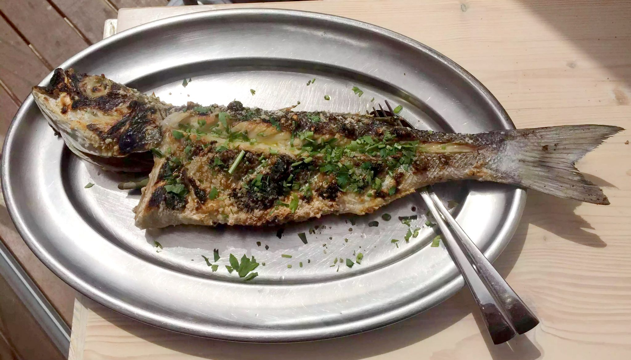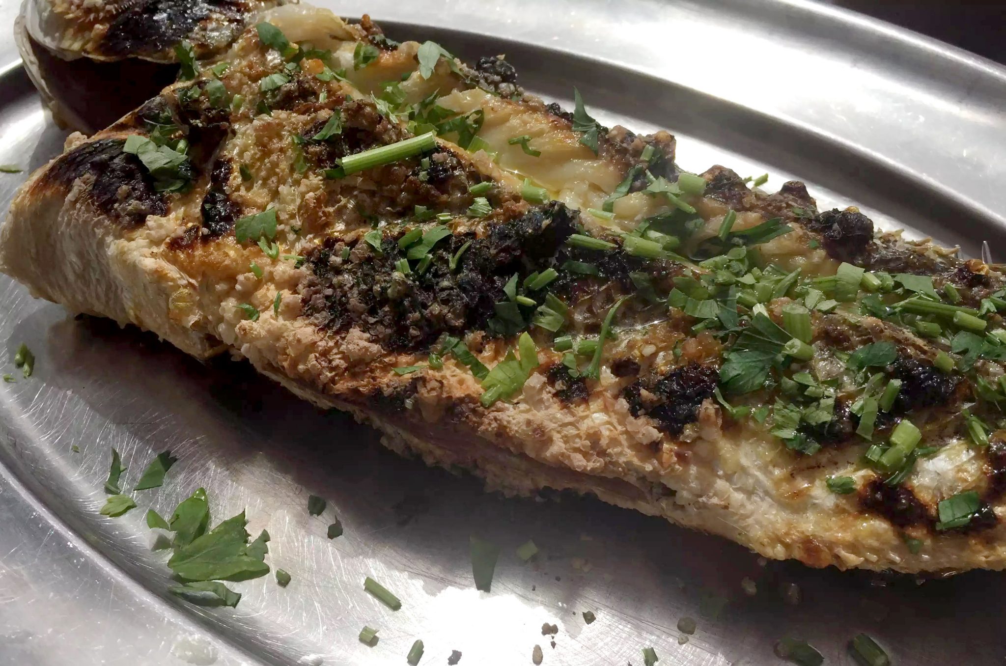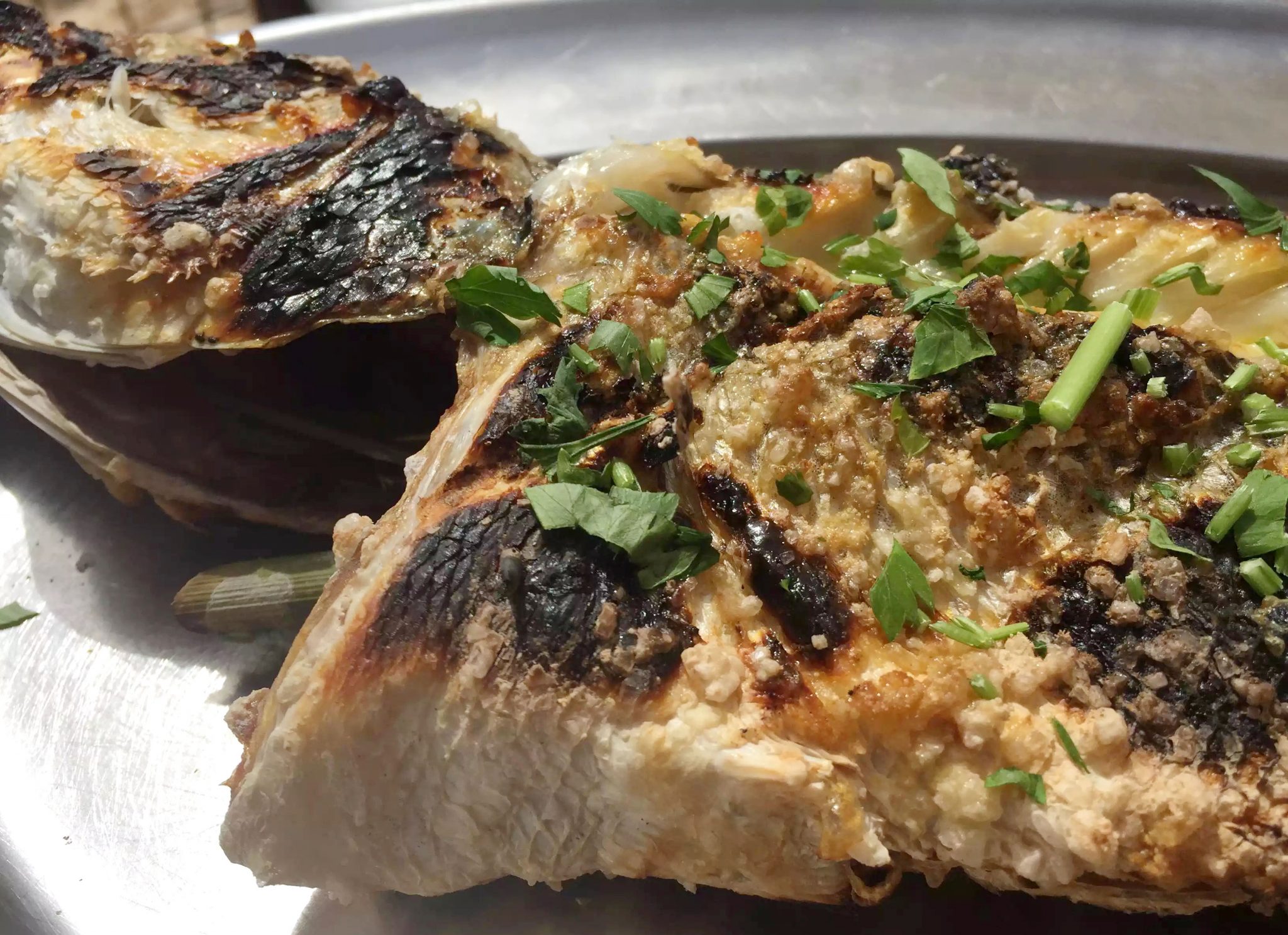 For our main course, we decided to order the grilled market fish (Sea Bream) for 4 and it was definitely a sight to behold! This I did remember to photograph! Big enough for the four of us to share, they wheeled it out to us on a trolley and then filleted it and served it for us at the table. Fish just tastes better BBQd. I love the burnt crispy skin and charcoal flavours paired with the delicate juicy meat with plenty of fresh lemon juice to squeeze over the top.