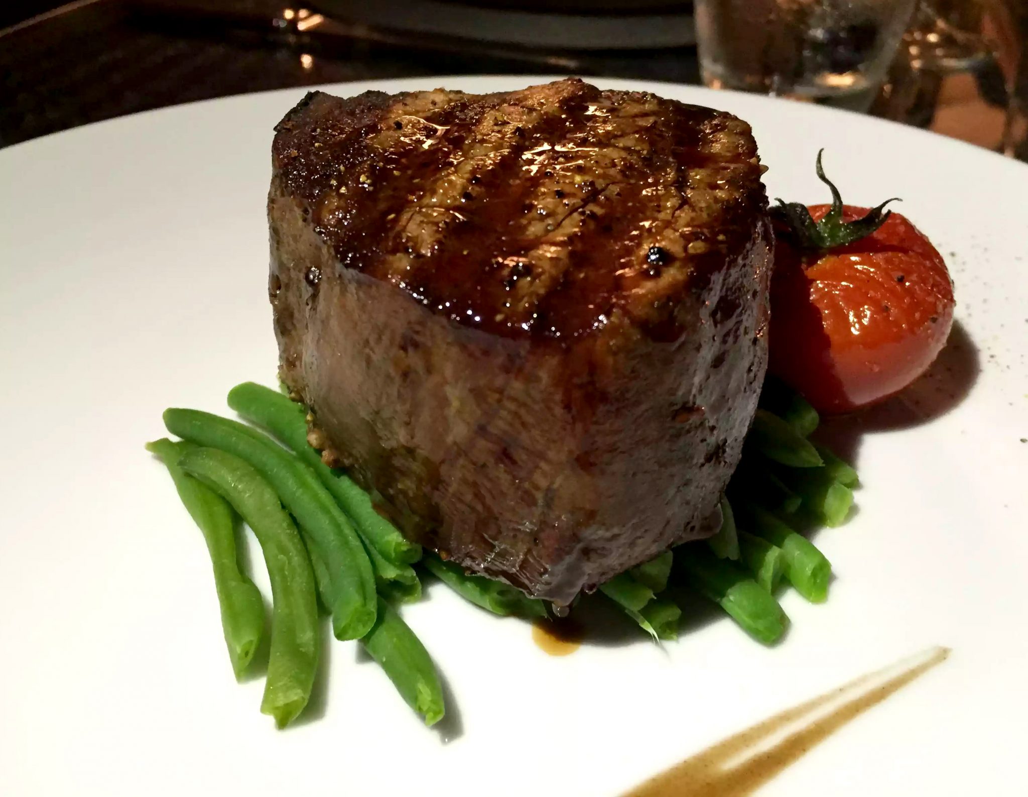 We had a quick drink at the indoor bar where we looked at the menus and I was spoilt for choice. They always have plenty of things on the menu here that I can eat, even with my restrictive diet and tonight was no exception. Torn between the burrata and tomato salad, the goat’s cheese salad, and the rocket & parmesan salad with mixed seeds for a starter and the steak, trio of fish or duck confit for a main! Decisions, decisions!