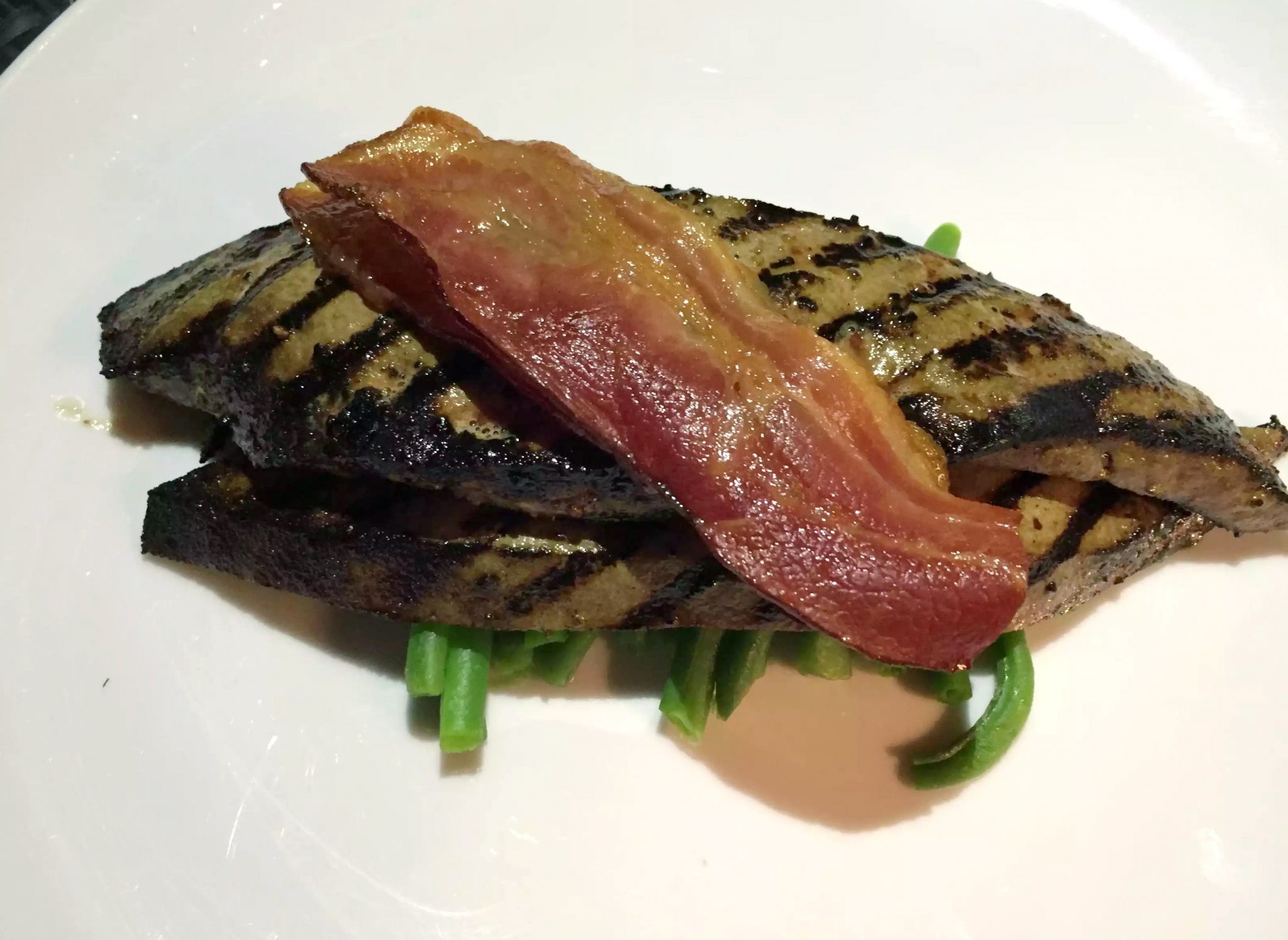 Menu roulette was the only way to pick tonight! You wait until the very last minute to decide (when the server asks you what you want) and then you say the first thing that comes into your head – under pressure I tend to be able to make better decisions. Anyway, the goat’s cheese salad and the trio of fish was what I ultimately chose – and I wasn’t disappointed with the starter! A huge slab of toasted goat’s cheese, crispy on the outside and soft, creamy, and tangy in the middle on a mixed salad with toasted walnuts and a delicious vinaigrette. It was huge but too delicious to leave any!!