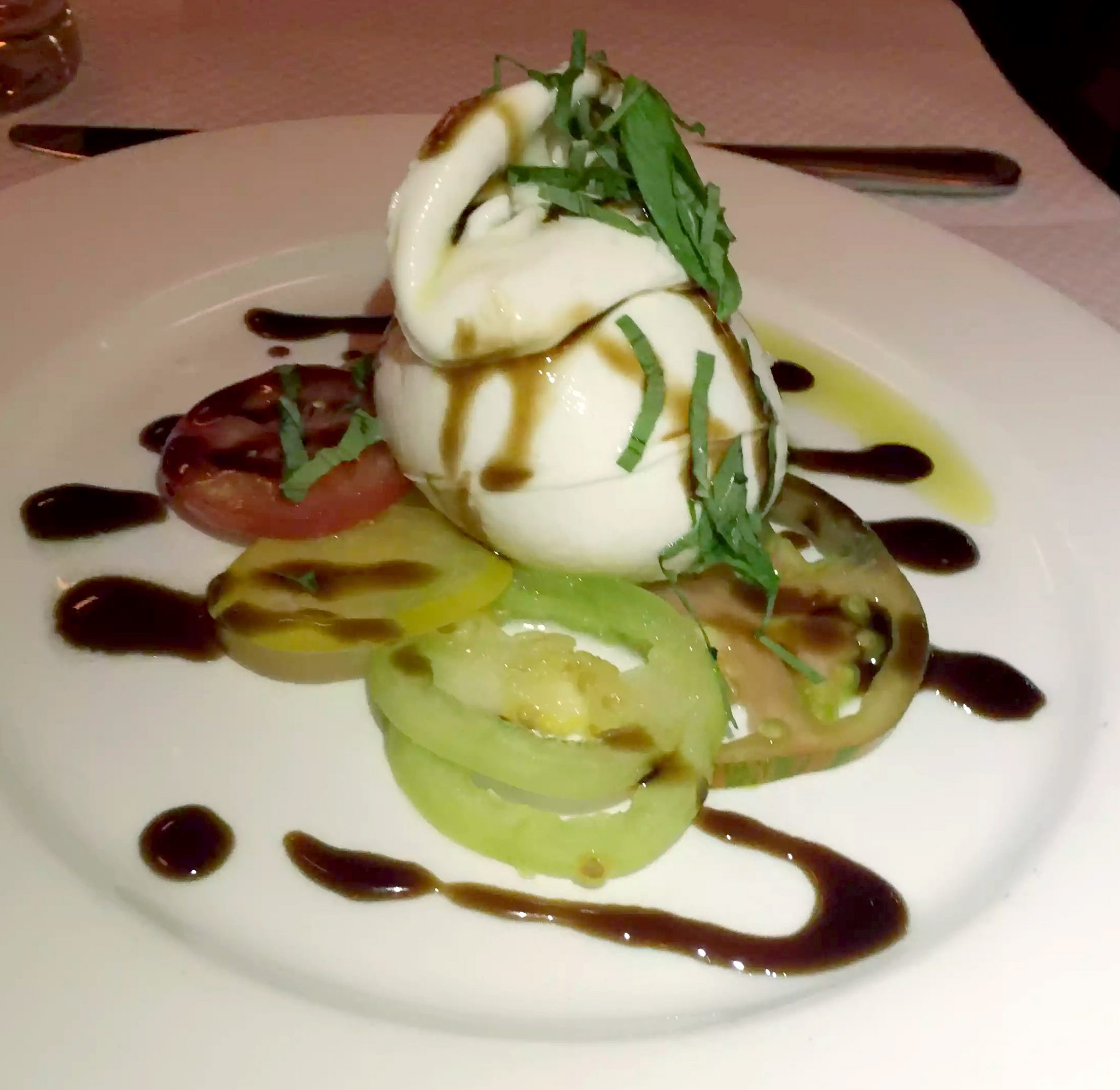 Robin ordered the Chicken Paillard with a frisée salad, roasted tomato and Parmesan. I think we all agreed that although it was fine, this was the least interesting dish, but then Robin always picks chicken when he goes out! He’s promised to let us make the menu choice for him next time.