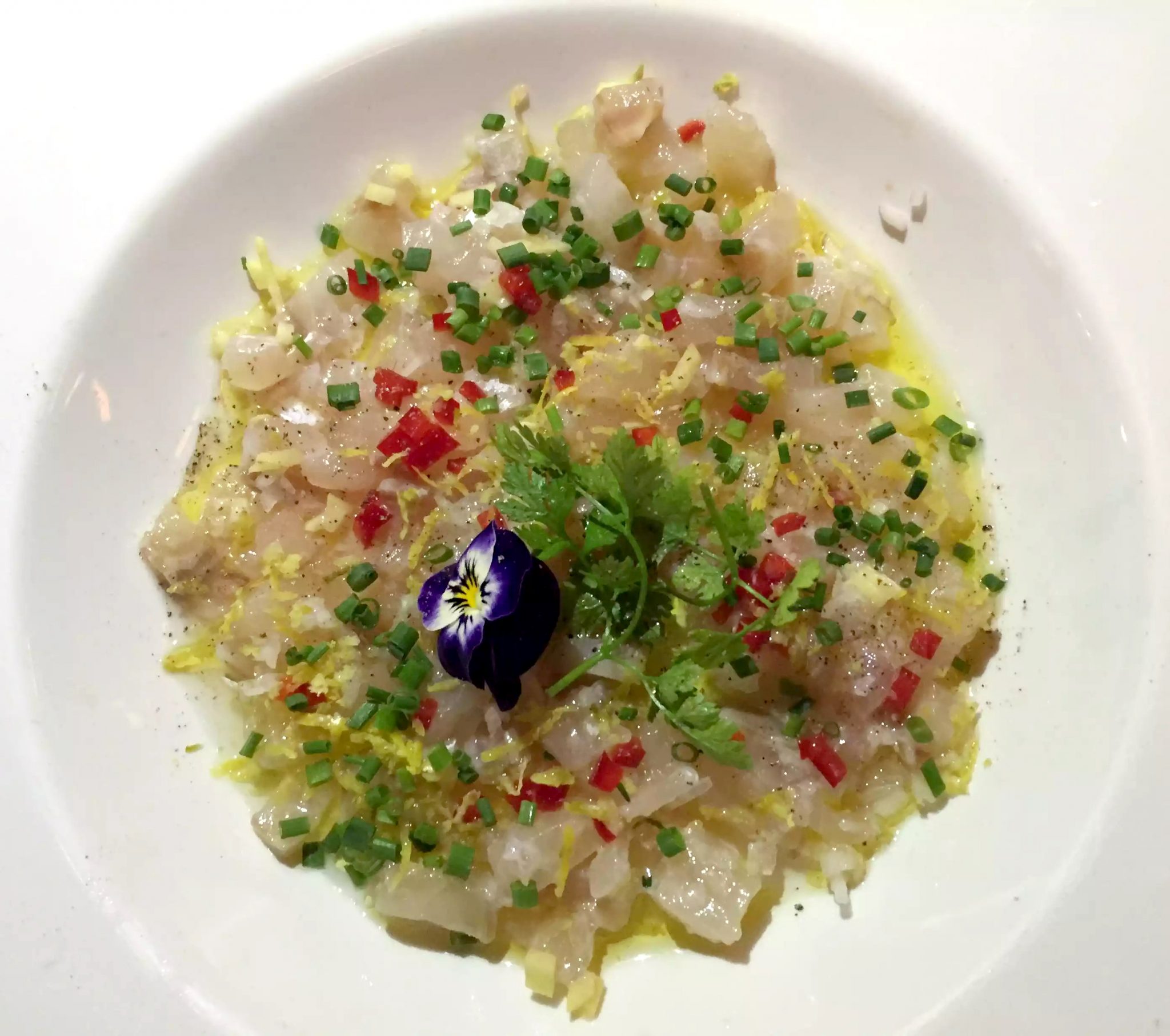 The starters arrived and they looked beautiful – the presentation was fabulous. My octopus salad was great, very light and fresh and the octopus wasn’t chewy or overcooked. I loved the paprika flavour on the octopus and the celery leaves were a really lovely, fresh addition.