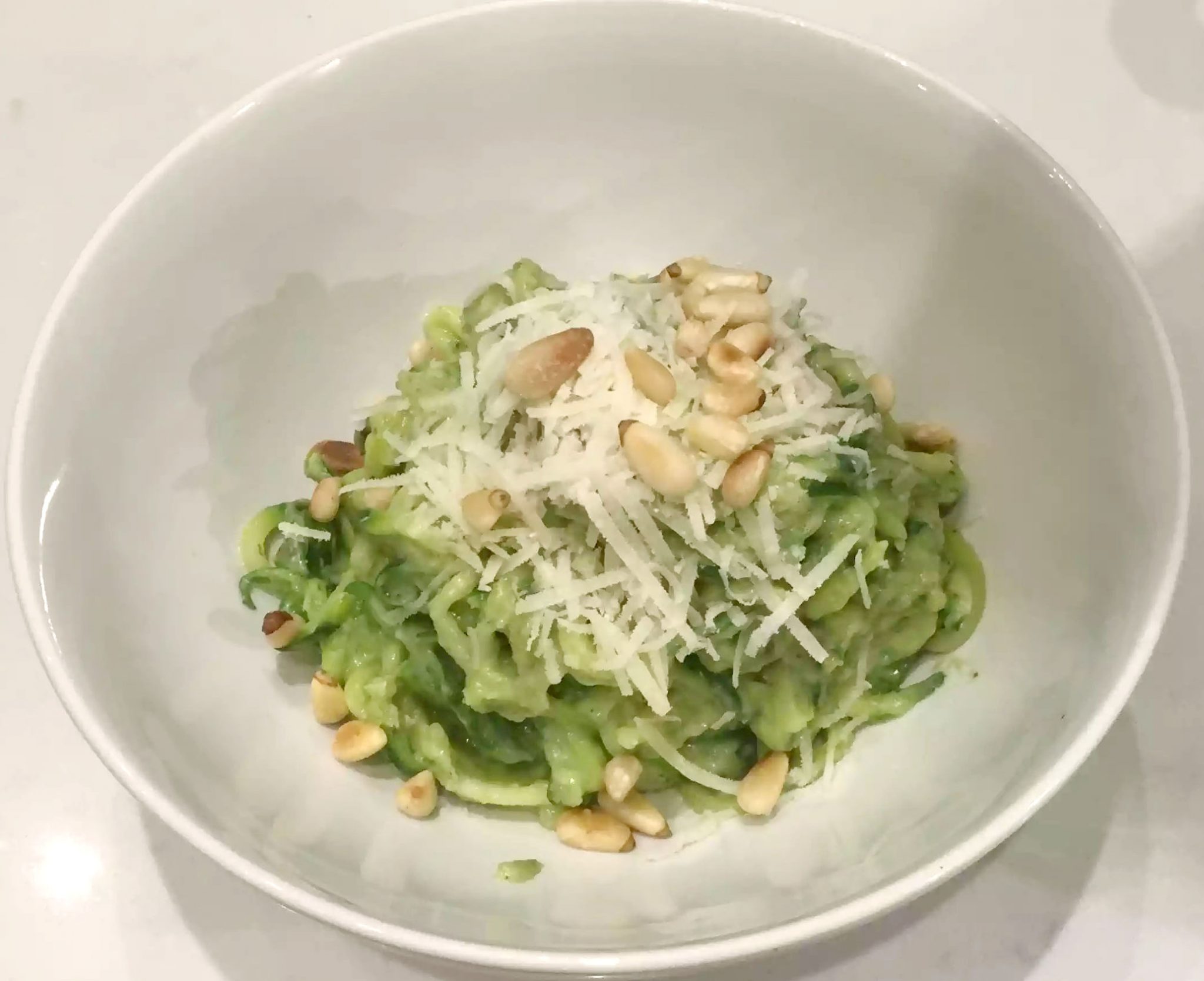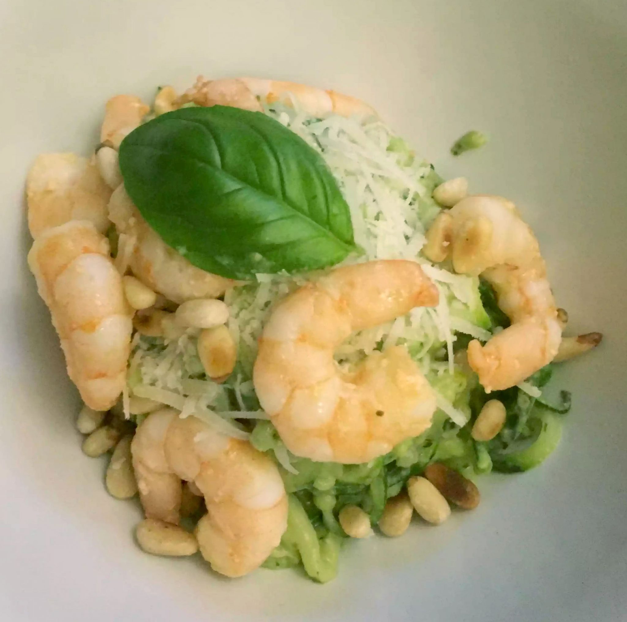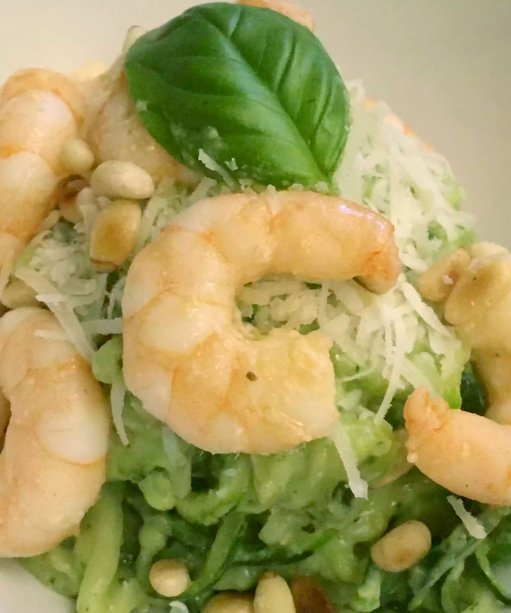 Courgetti ‘Spaghetti’ with Avocado Pesto and Prawns