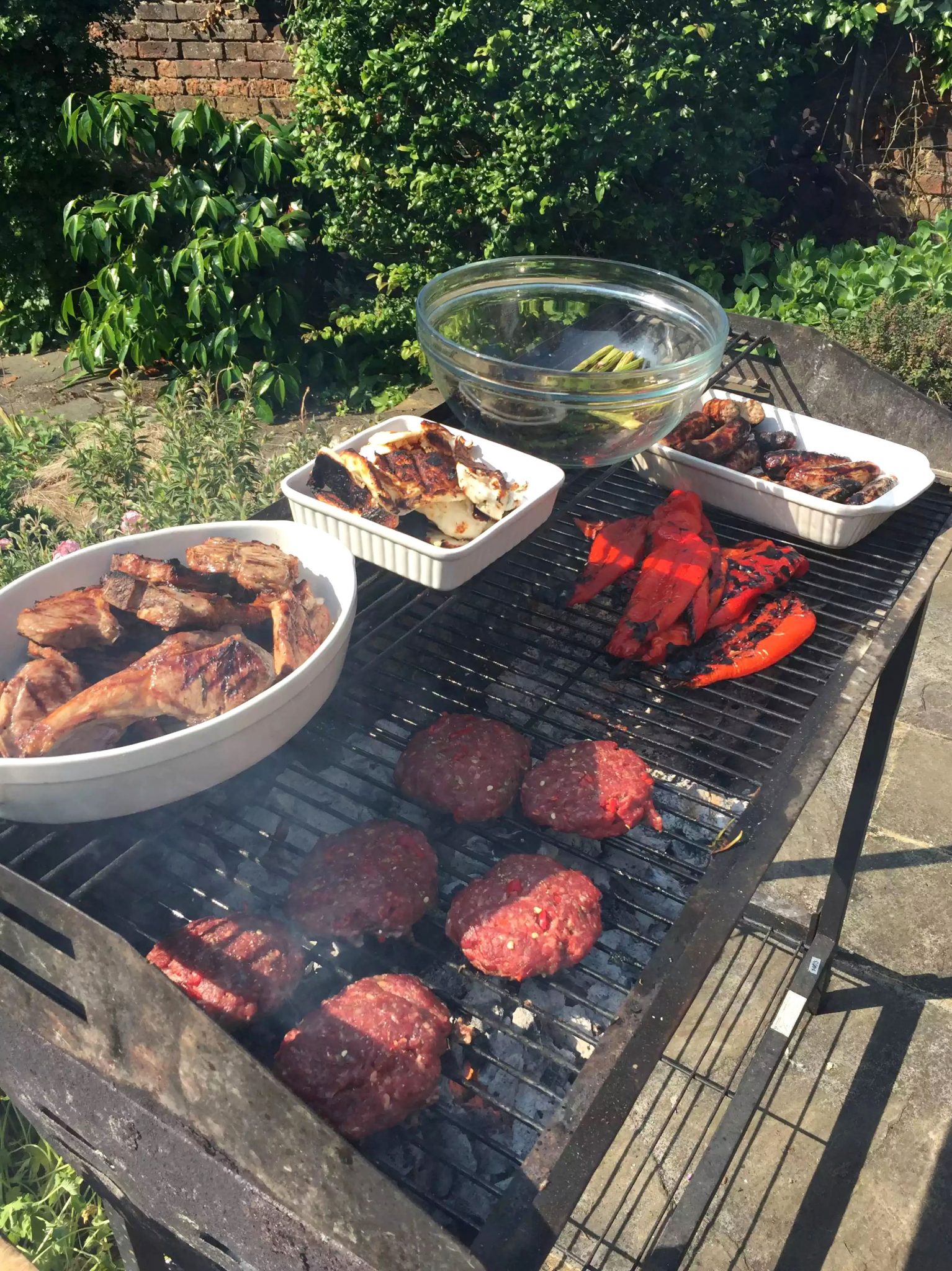 Today, we also had lamb steaks and chops, sausages, some vegetables and halloumi to go on the grill. Picked fresh from the garden, we added some rosemary and olive oil to the lamb for a bit of a change.