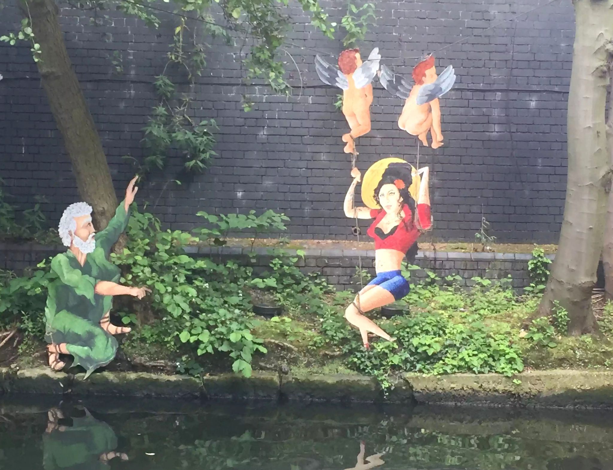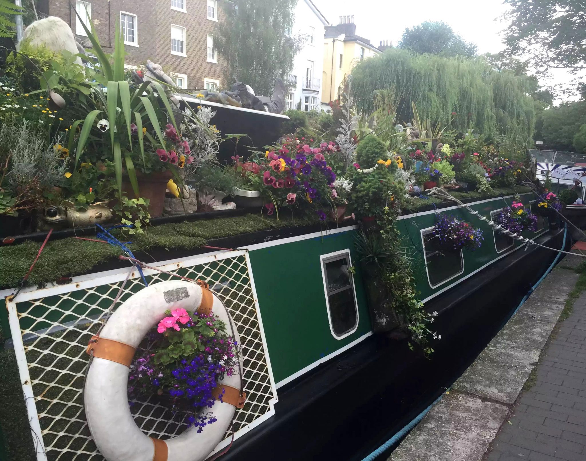 We joined the canal at Kings Cross at wandered along the towpath through Camden all the way to Primrose Hill in the sunshine. Only in Camden will you find a sculpture of Amy Winehouse being talked to by God and lifted up by cherubs next to a canal boat covered in flowers!!