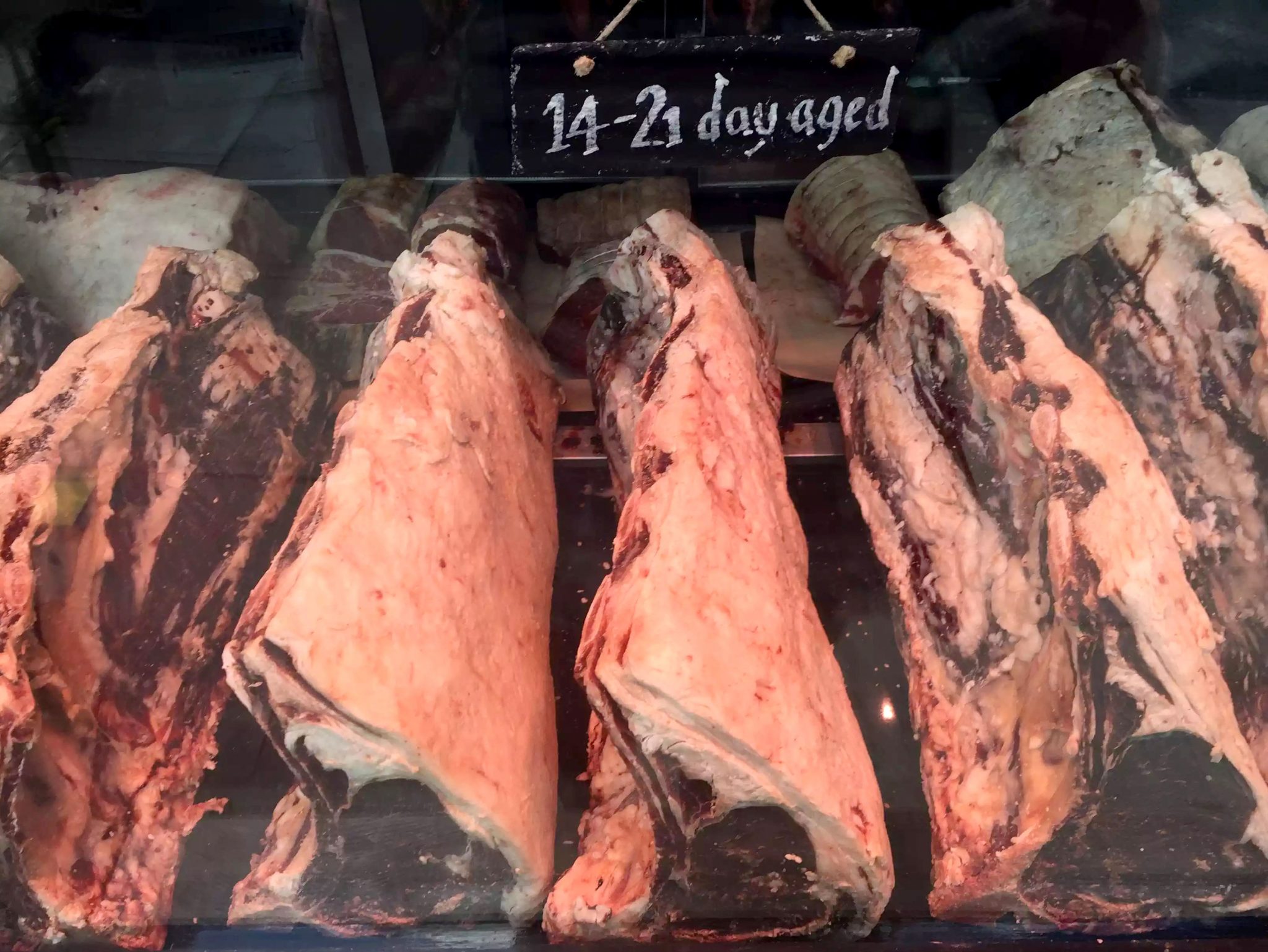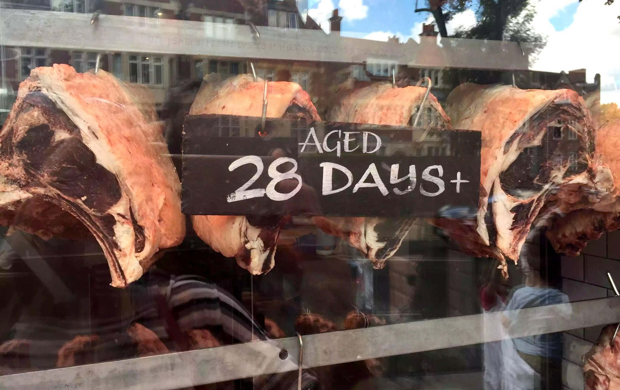 Walking into Hampstead I saw the most amazing steaks hanging in the window of the local butcher’s shop (The Hampstead Butcher & Providore) and we will definitely need to order some of their steaks soon!!