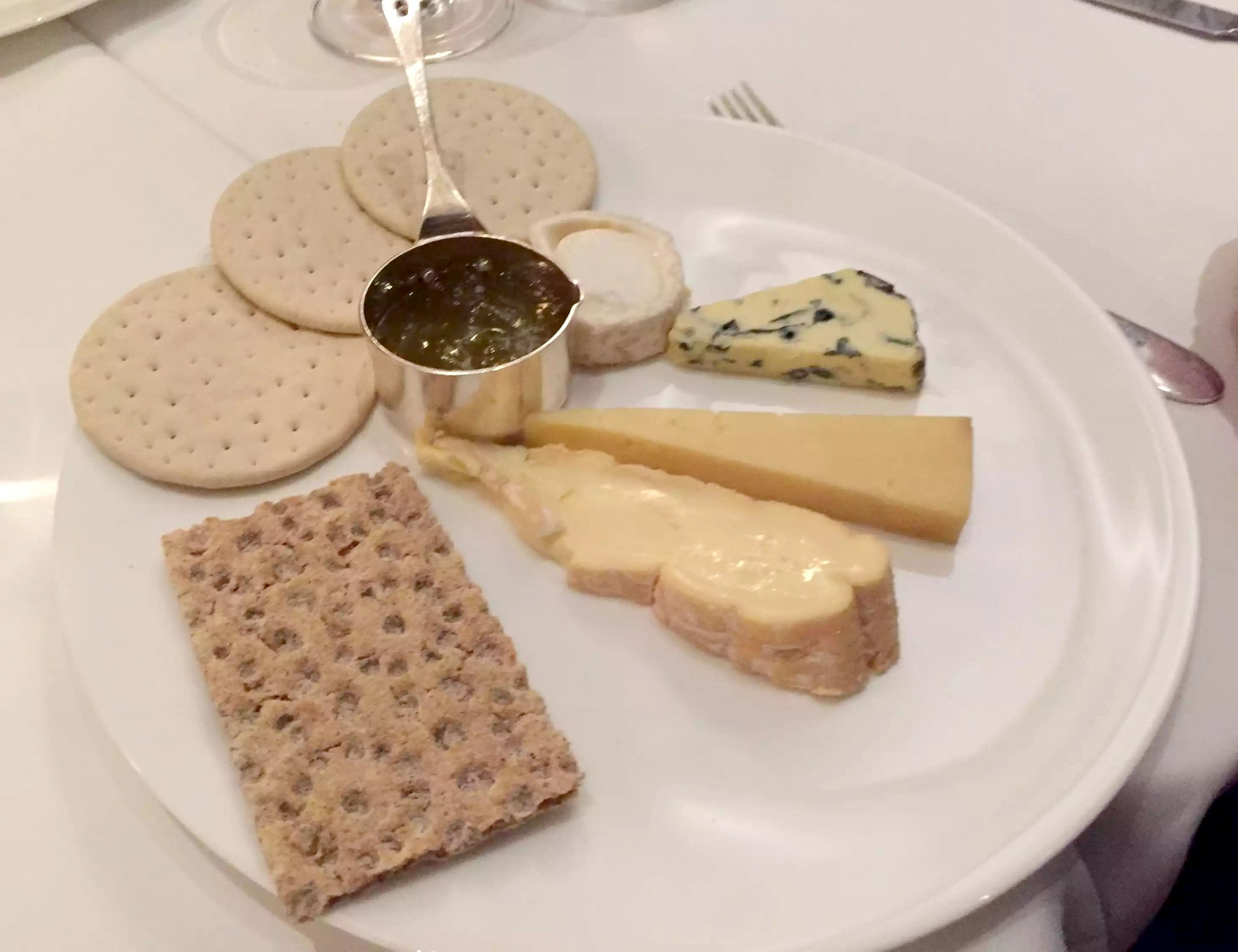 We were stuffed and didn’t really need desserts, but Craig wanted to something sweet so we decided to share a couple. Craig and Laura shared a cheesecake and Dan and I shared the cheese plate. I definitely wouldn’t have wanted one to myself, it was more than enough for two people, with a selection of 4 cheeses (a goat, a blue, a soft brie type and a harder cheddar type), but the stand out was the fig mustard. A fig jam with a powerful hit of mustard that paired perfectly with the cheese.