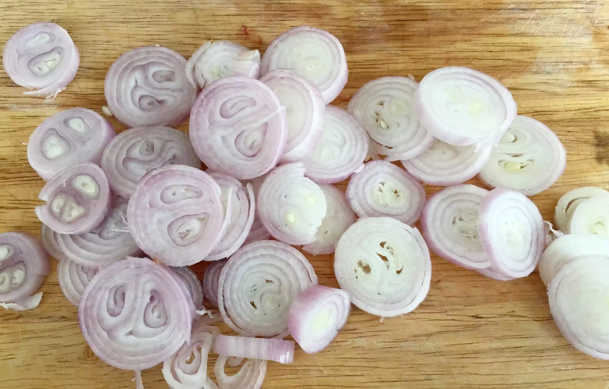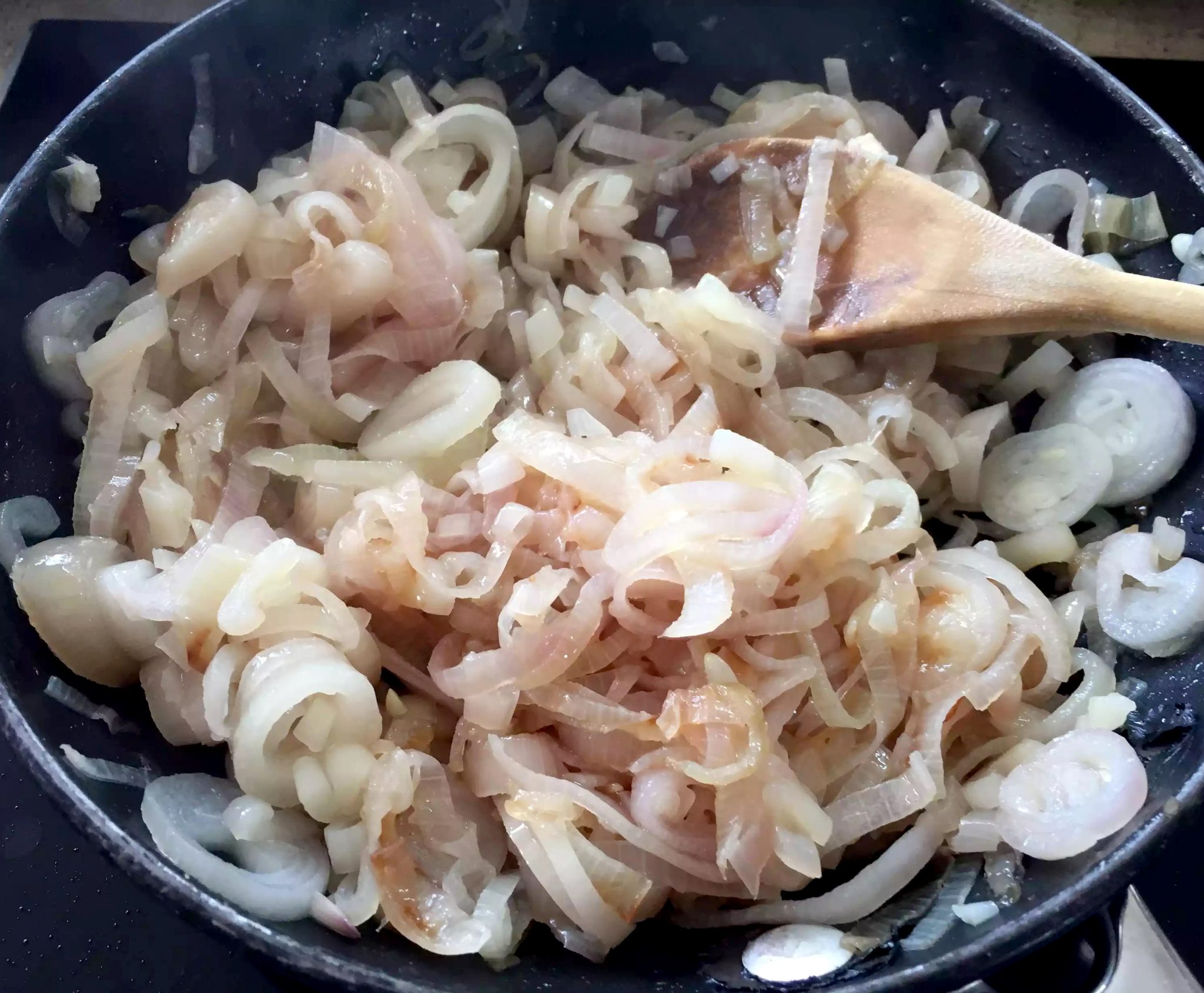 I started by peeling and chopping the shallots – I found some amazing banana shallots in the supermarket, but if you use the smaller ones, you may need to use a few extra. I then heated 1 of the tablespoons of oil (keeping the second back for the dressing) in a frying pan and fried them on a very low heat to soften them without burning them. They took about 20mins to cook thoroughly.
