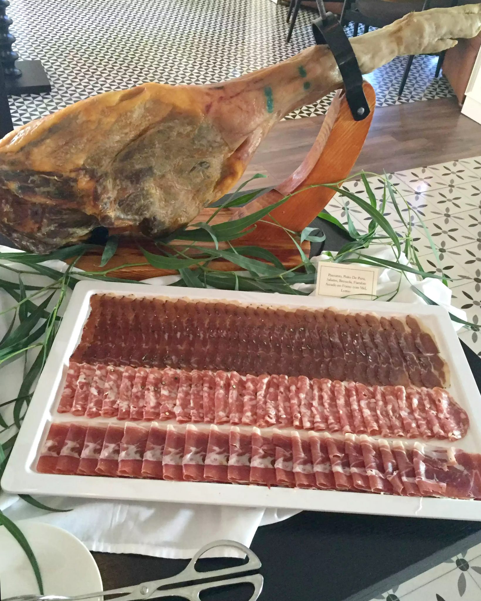 I filled a plate with goats cheese, manchego, camembert, stilton, and some of the most amazing fig jam and then headed to the charcuterie station for some bresaola, salami and prosciutto.