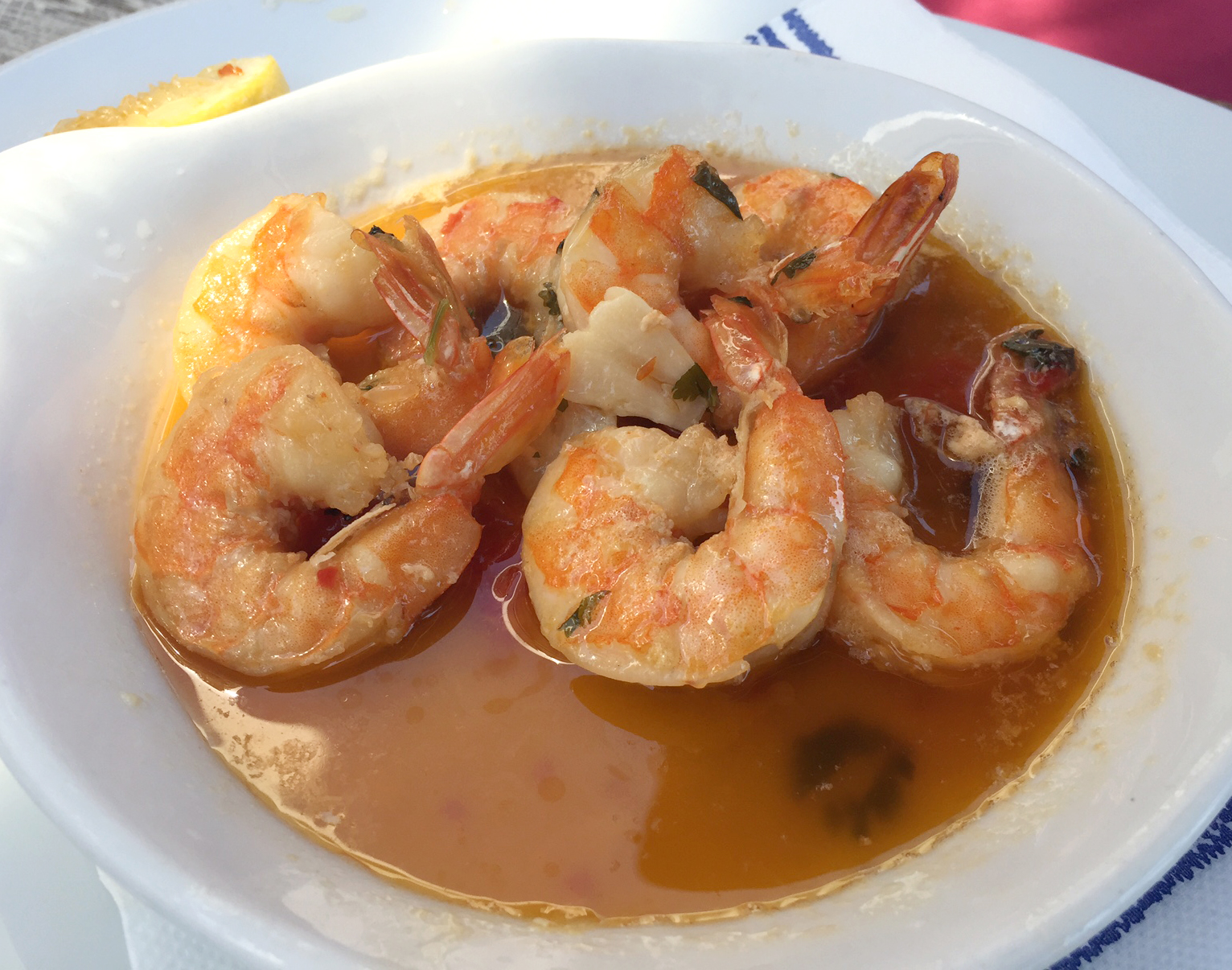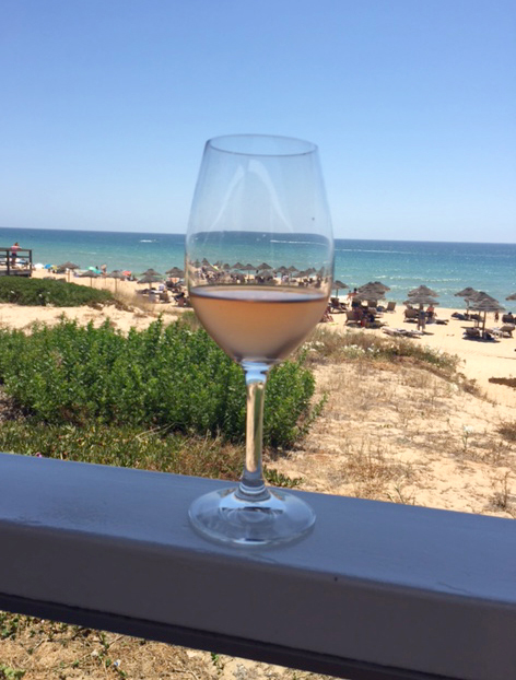 We were brought the menus and we ordered a bottle of l’Ostal Cazes Rose wine which we always order when we’re there. I know it seems a bit ridiculous to be drinking a Provencale Rose in a Portuguese Beach Bar (and normally we do order Portuguese Wine, both red and white when we’re eating out) but I’m yet to find a Portuguese Rose that I like. I like a very light blush wine and they all seem a bit too pink and heavy for me and a bit too fruity – I’m open to recommendations though if anyone has some good ones they want to share? The l’Ostal Cazes is a very light, drinkable lunchtime wine – light enough not to give you a headache when you’re lying in the sun later that day. Fruity but not too much so it tastes of strawberries and pomegranates and pairs very well with seafood.