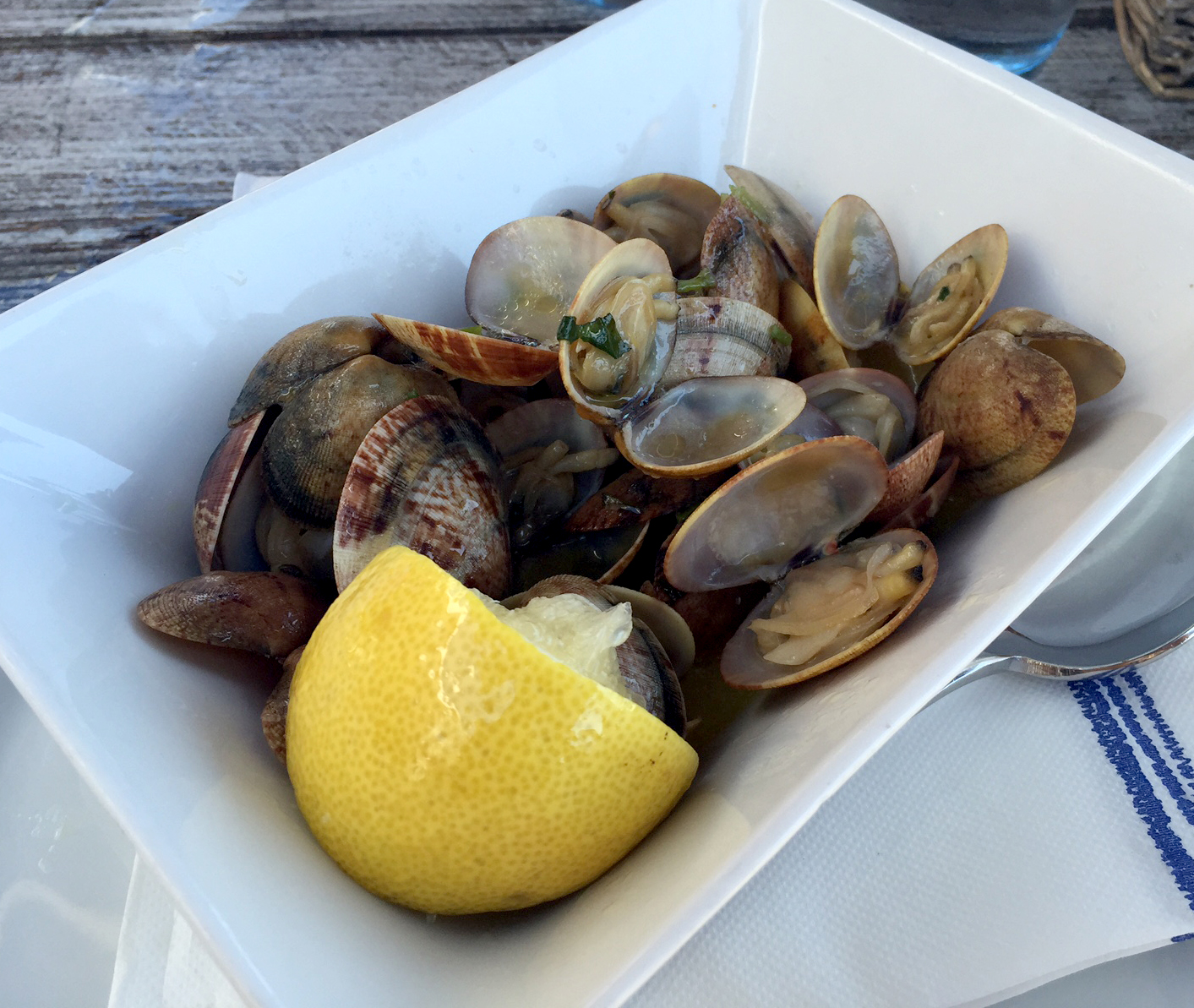 Picking the food here is always the tough bit – I love the sound of everything on the menu and always have such a hard time choosing. Luckily Mum and I have the same taste in food and very similar diets so we decided to share everything. Our absolute favourite is Clams Bulhao Patao (a Portuguese speciality – clams cooked in white wine, olive oil, garlic, lemon and coriander) and I’d been dreaming about them since the last time I was in Portugal and I always have them when they’re on offer, so that was non-negotiable. But what to pick for the other dish? I normally pick the grilled squid (squid is one of those things that can be amazing or pretty disgusting depending on how it’s cooked, but Maria’s always does such an amazing squid that I have it all the time there.)