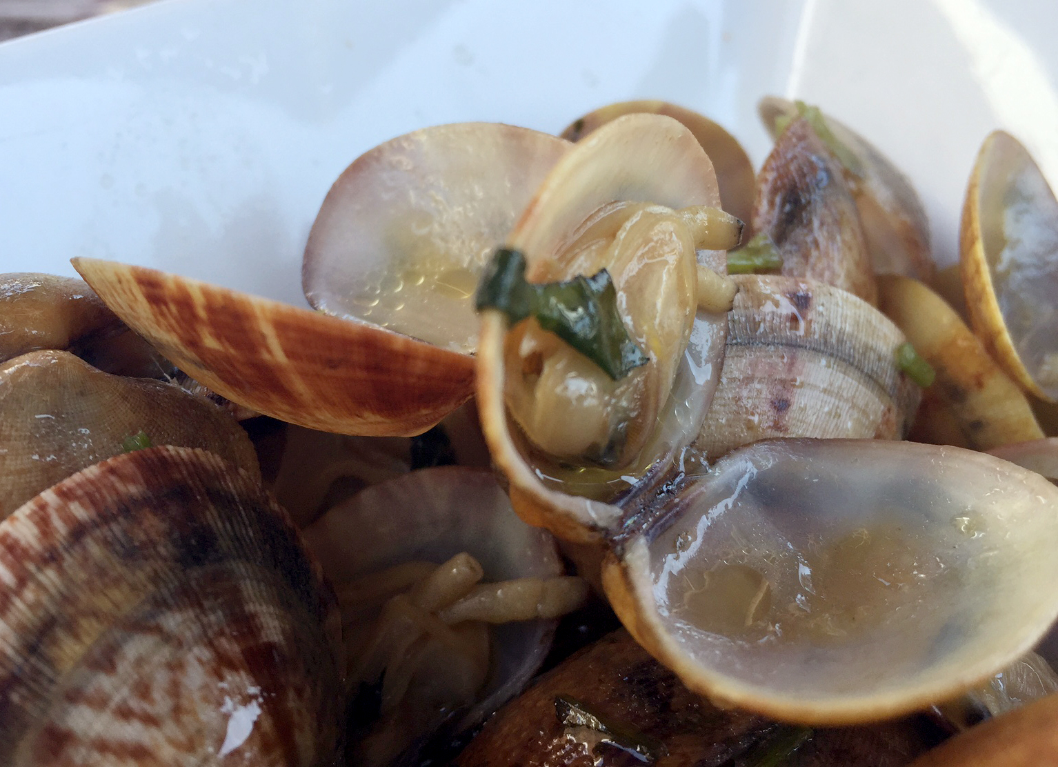 The clams tasted exactly how I remembered and were outstanding. I’ve tried many times to re-create the sauce that they’re cooking but I just can’t get it right. The balance of flavours is amazing but I’m sure it tastes better anyway because of where it’s being served. What food wouldn’t taste better on the beach, on holiday, in the sunshine – maybe that’s where I’m going wrong and why it doesn’t taste the same in grey, rainy England! Salty and cooked with plenty of garlic they really are my favourite Portuguese dish and I can’t get enough of them!