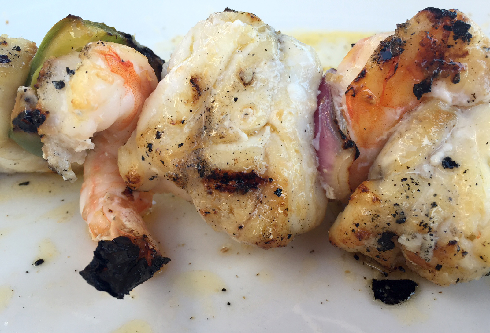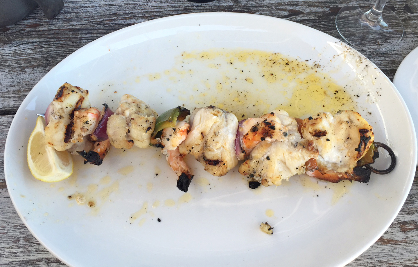 For the main course I ordered the monkfish and prawns skewer. Just plainly drizzled with some olive oil and a squeeze of lemon it was the perfect light dish for the hot lunchtime. The skewer had been barbecued so it had that slight charcoal flavour and tasted amazing in the sunshine. The monkfish was really juicy and meaty – it was exactly the kind of healthy, fresh dish that I’d been looking forward to.