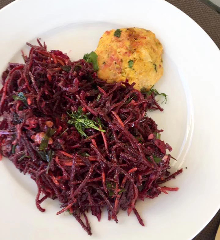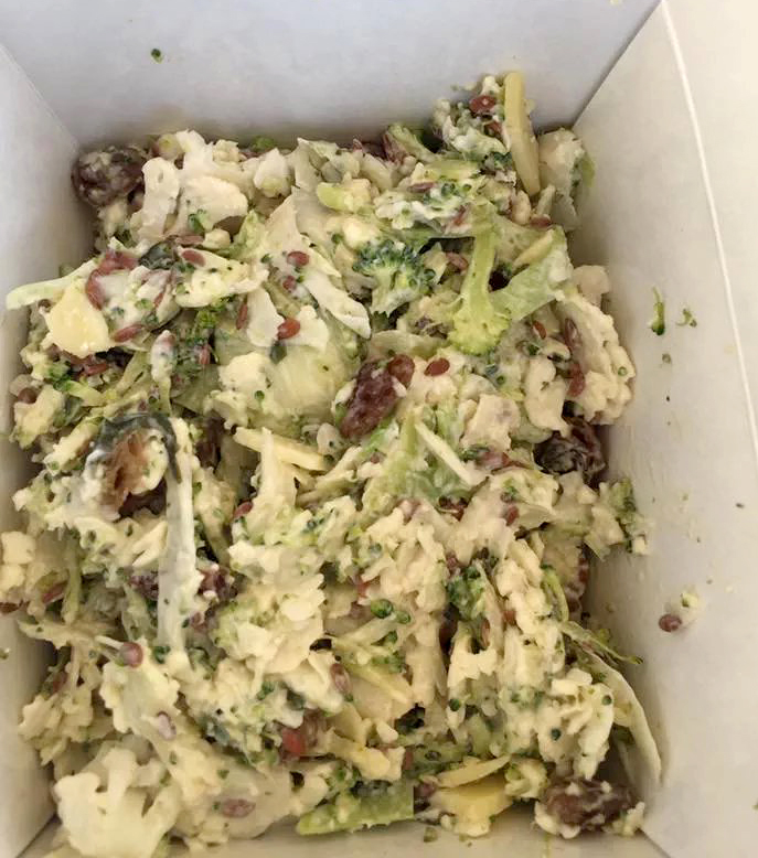 The broccoli, cauliflower & cheese salad with yoghurt dressing was delicious, as was the beetroot, red cabbage, honey & cinnamon one!