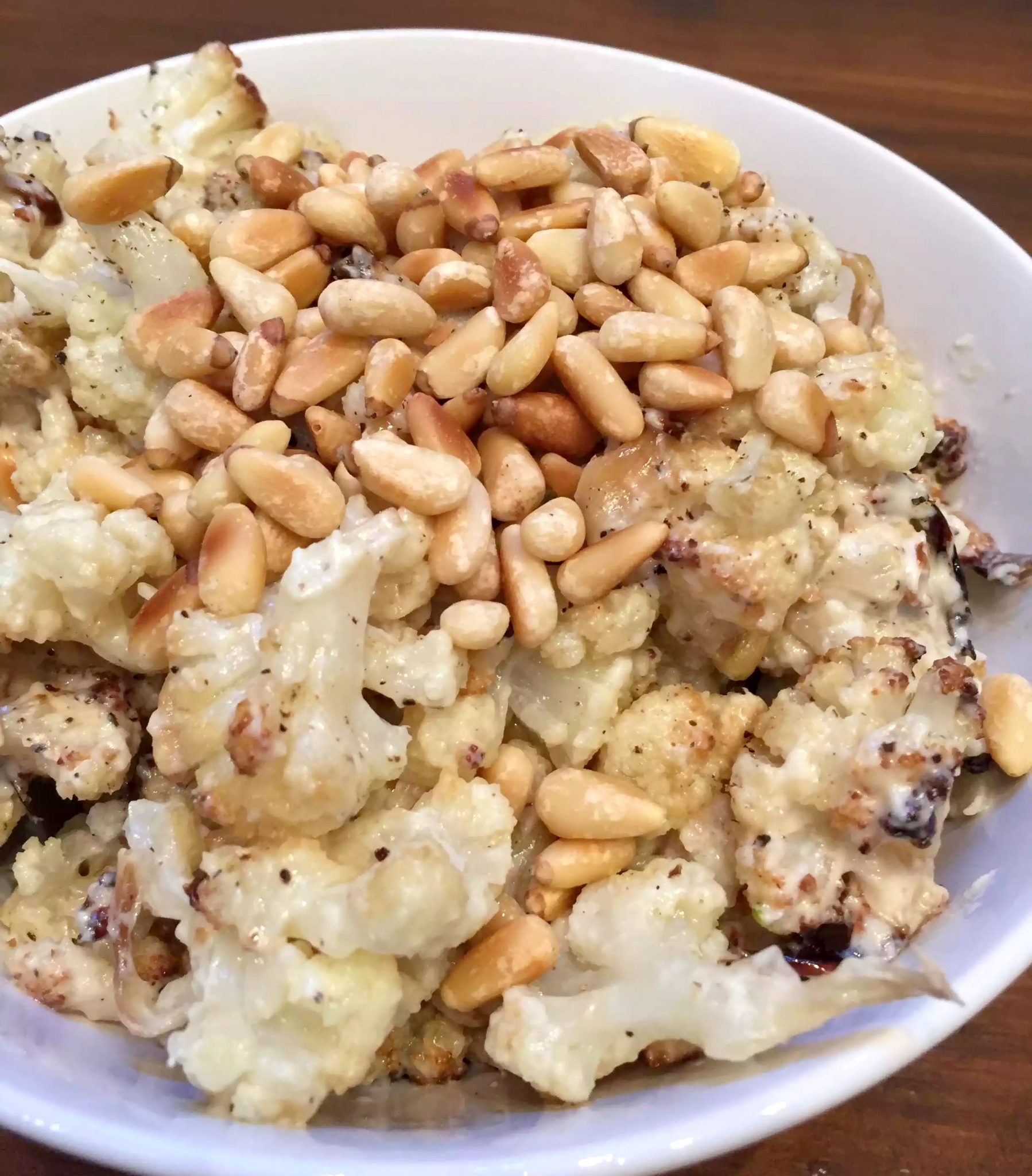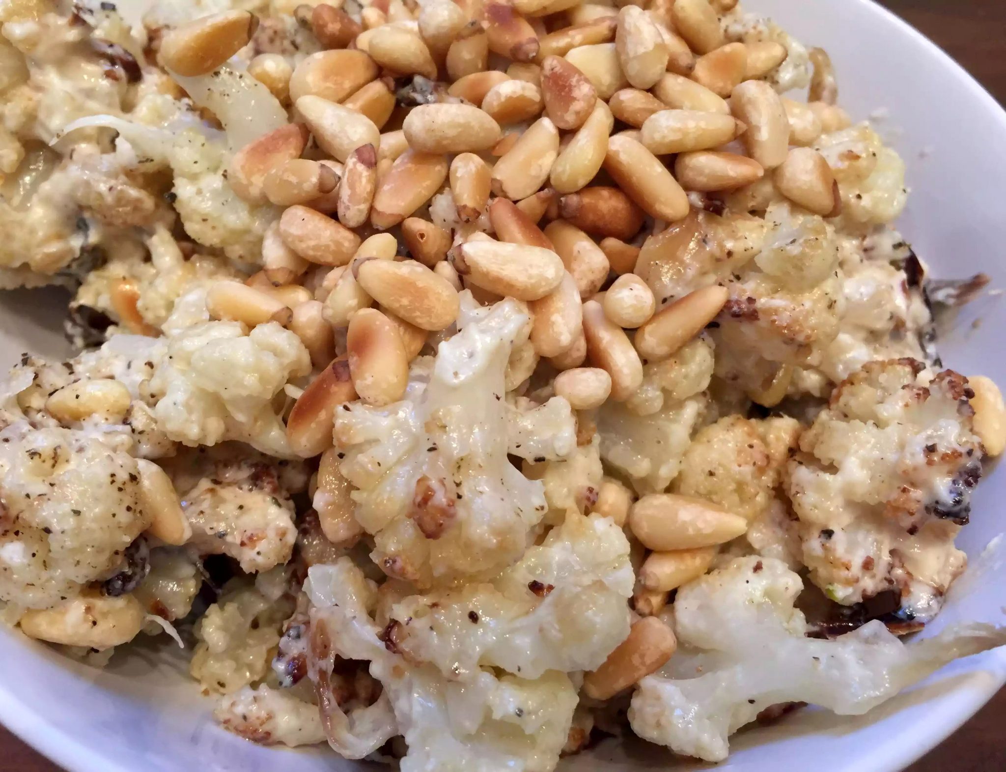 Roasted Cauliflower with Pine Nuts & Tahini Dressing