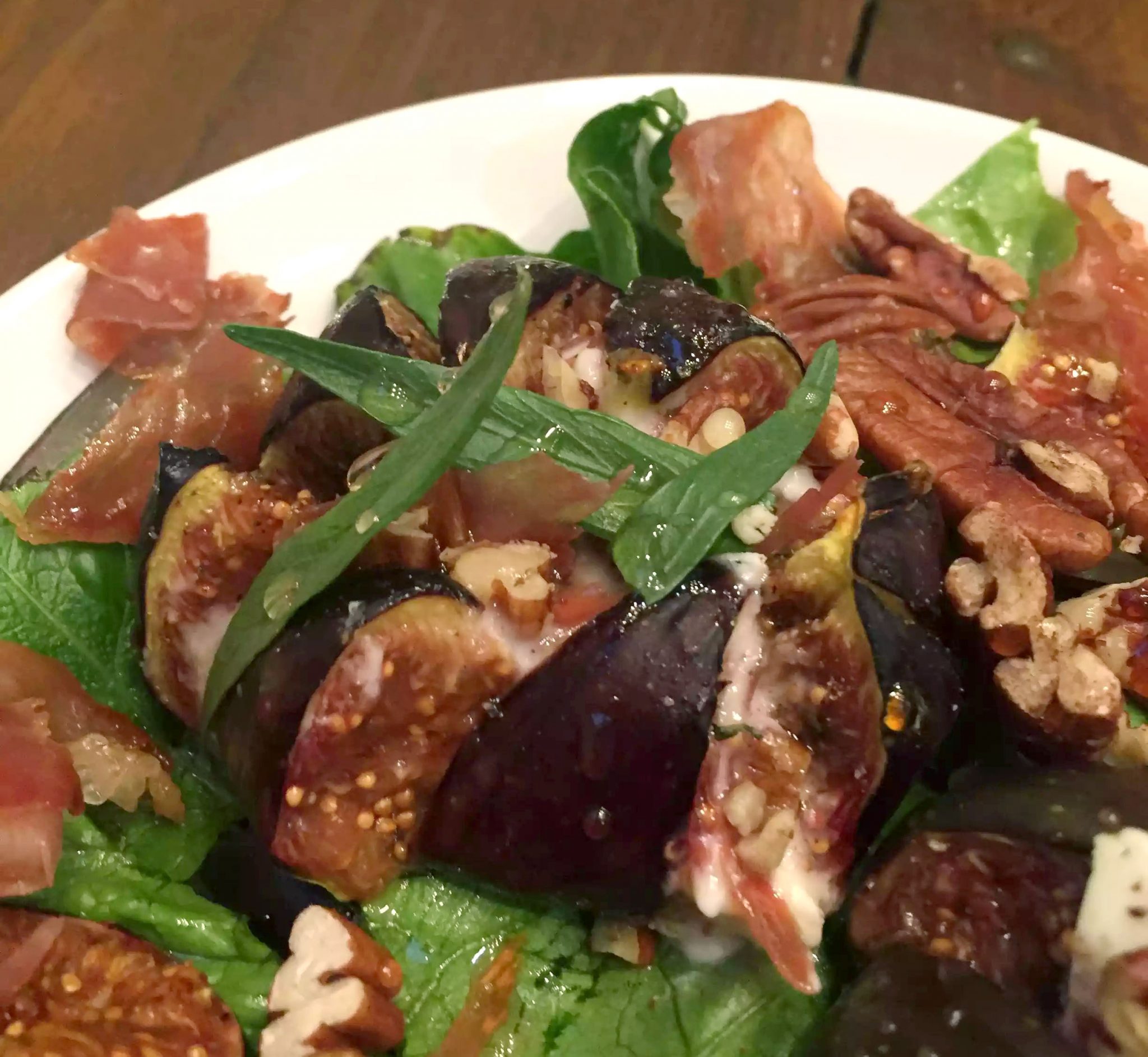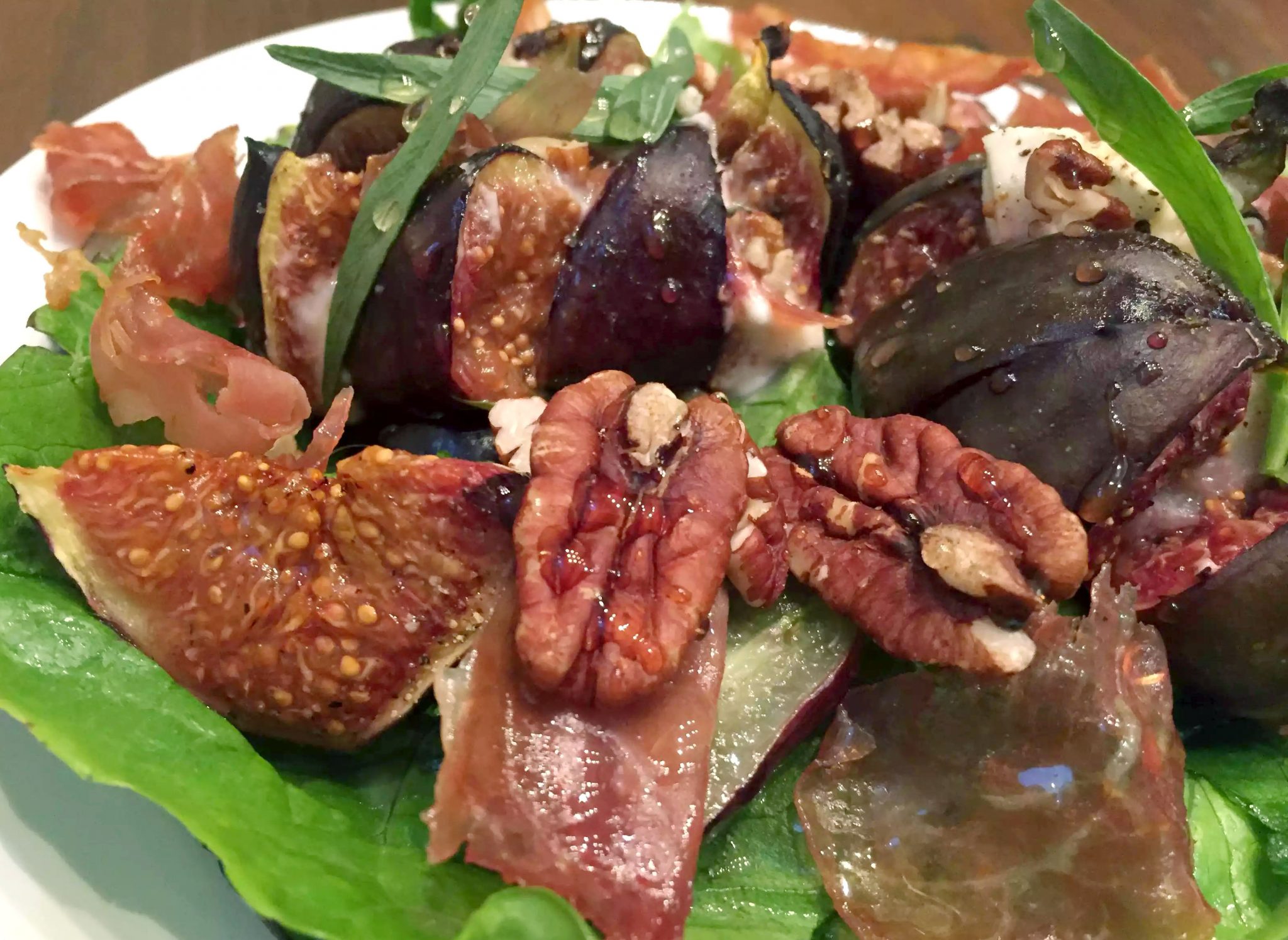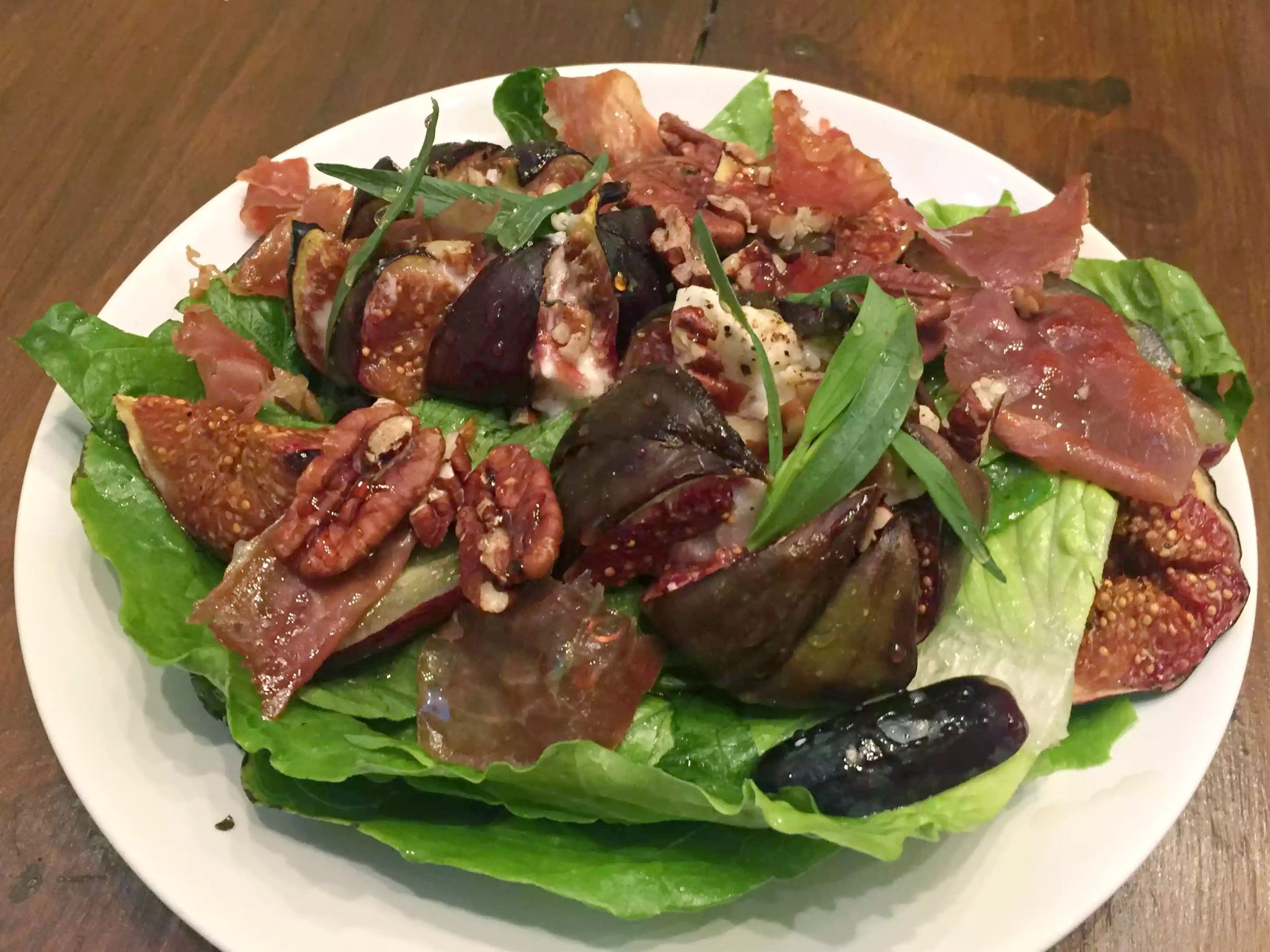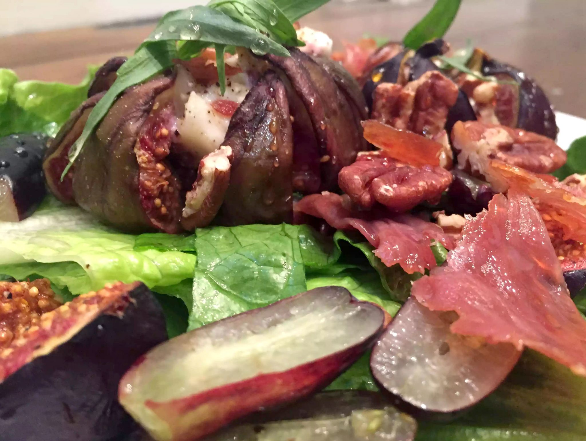 Roasted Fig and Brie Salad with Crispy Prosciutto, Grapes & Tarragon
