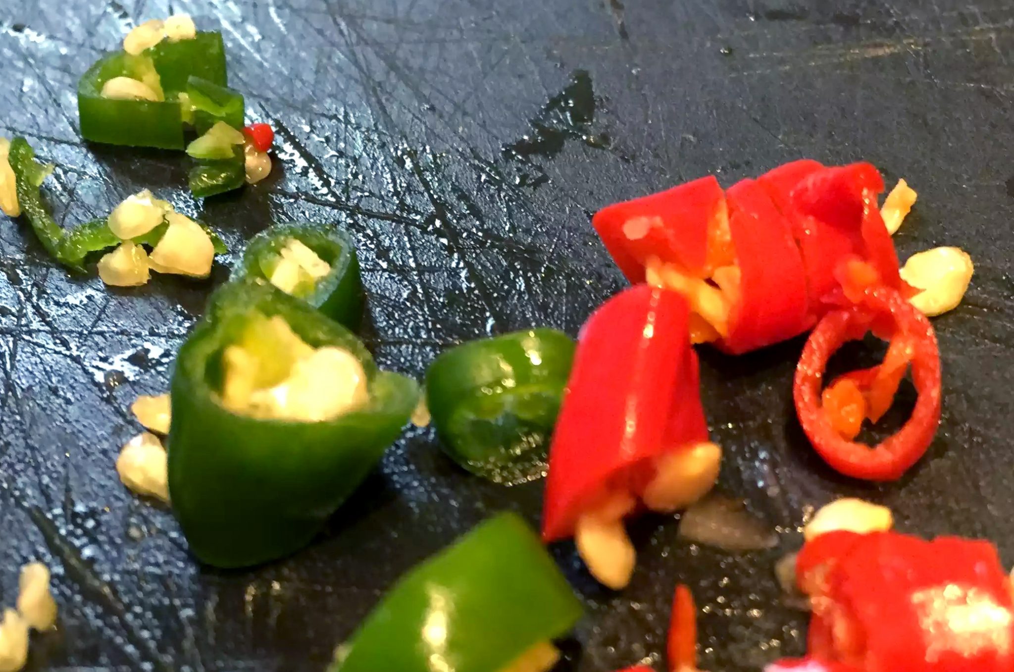 Then I chopped up the bird’s-eye chillies – these really pack a punch, less is definitely more (only use one if you’re not a huge fan of spice) – and added them to the pan to fry off for another couple of minutes.