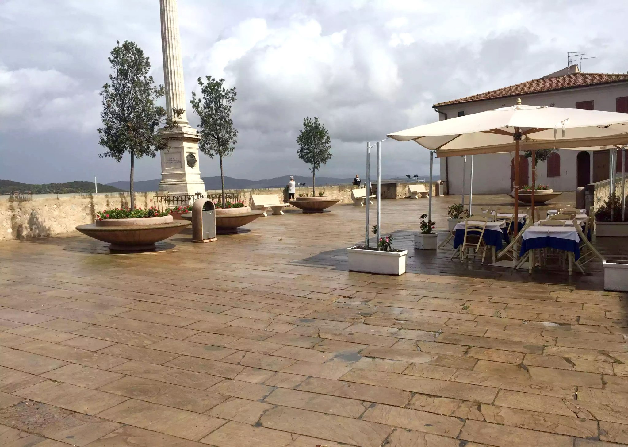 We arrived very late on the Thursday night (4am – thanks Ryanair for the delay!) so we checked into our hotel, the Baia di Talamone and went straight to bed. The next morning we got up early (I’m never able to sleep in when I’m on holiday) and, well it wasn’t exactly blue skies! Big threatening rain clouds hung in the sky but we decided to risk it and go and explore after a coffee at the hotel.